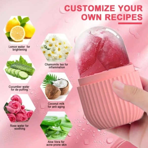 ăCreative usingă: the face roller ice can well improve your skin condition, you can use whitening lemon water, green tea, decongesting cucumber water, coconut milk, etc. to improve your skin, customize the recipe creatively according to your skin's needs; Also you can use a juicer, then add water essential oils and roses to an ice tray, waiting 3-4 hours, and then you're ready to use